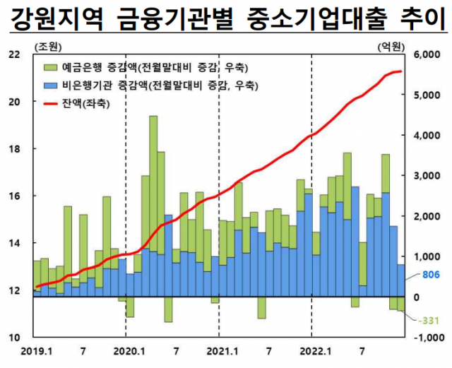 강원도내 기업·자영업자 대출 역대 최대…연체율도 두 배 껑충
